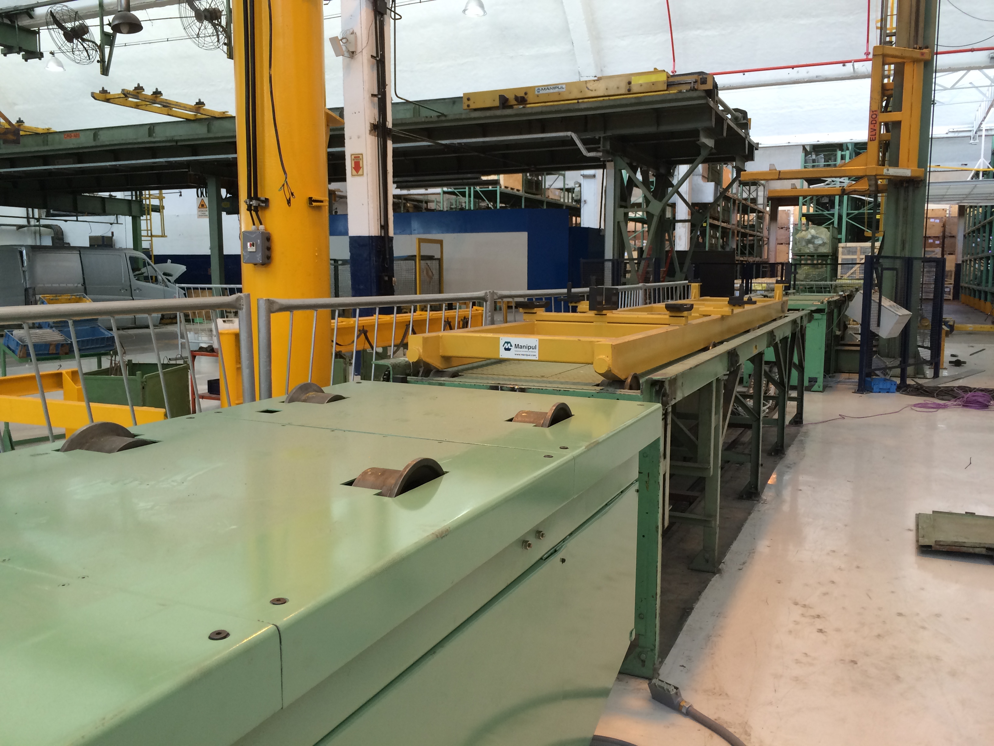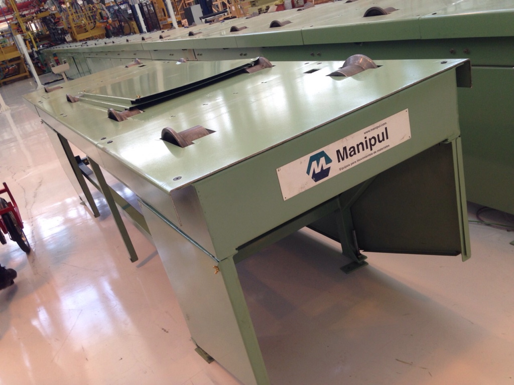 - 10 mesas de rodillos motorizados de 6000 mm de longitud y 1100 mm de altura